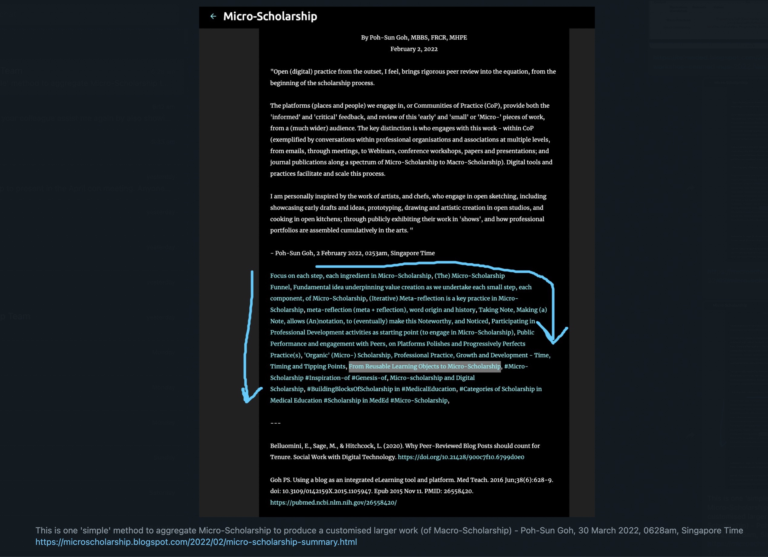 "Micro-Scholarship is an activity for this digital age, acknowledging and anchored on digital learning, digital reflection and digital conversations and engagement, amplifying these through digital practice, and aligning this to expression and exhibition of professional knowledge and skills as digital artefacts, output, and Scholarship." Poh-Sun Goh, 5 April 2022, 0506am, Singapore Time